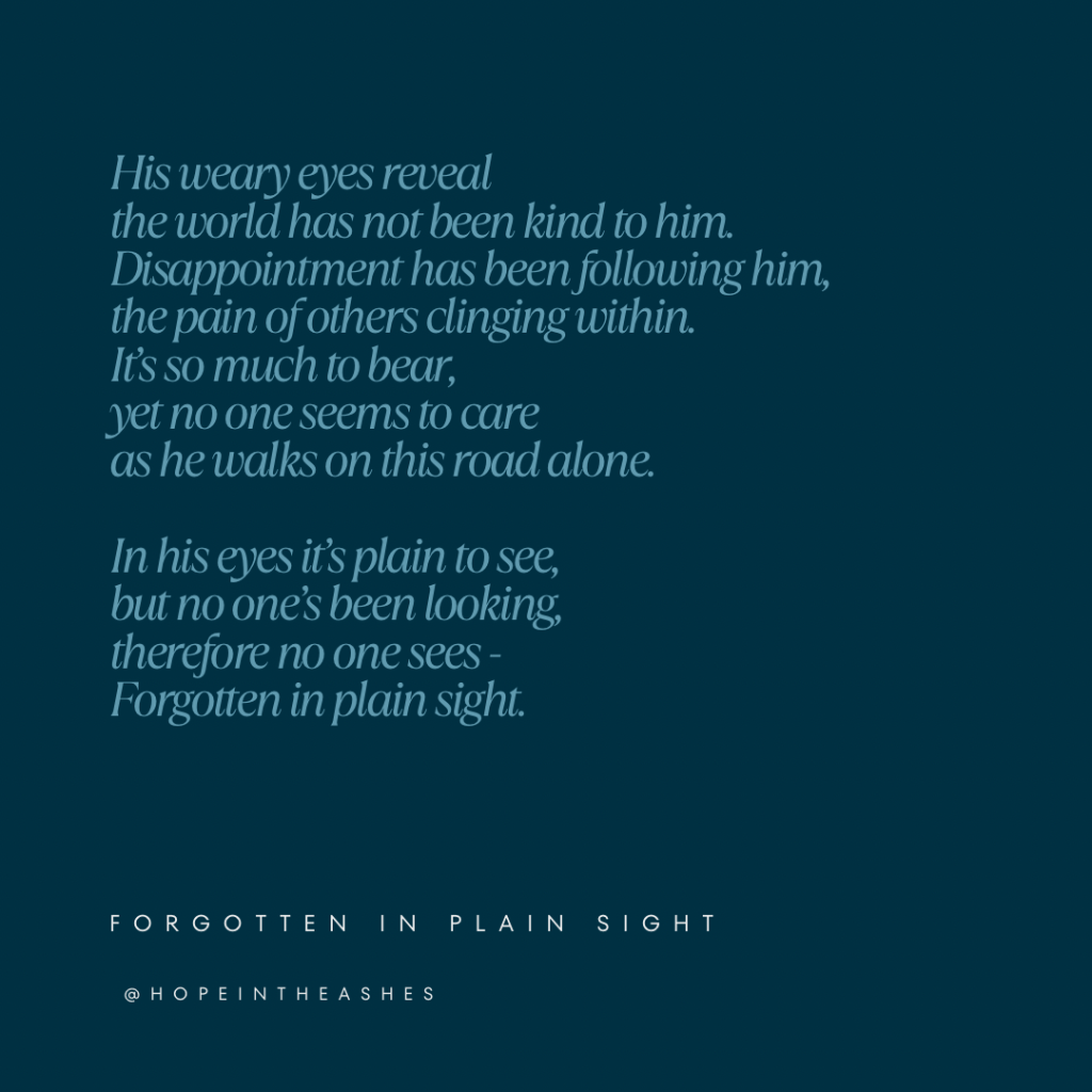This poem is a reminder for me to look for opportunities to seek out, pray for, and encourage those who may be quietly struggling or feel overlooked.